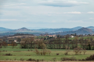 - Vue sur la chaîne des Puys et la butte de Montcelet (étonnant paysage de "savane").