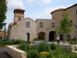 4/ L’emprunter et au panneau stop, poursuivre sur la droite par une longue descente. À l’entrée d’un virage, quitter le chemin pour le sentier de droite, monter pour atteindre une route, la suivre par la gauche sur un accotement herbeux (220 m). Après la propriété de Grange-Fort couper la route, tourner à droite, progresser toujours tout droit en oubliant les chemins de part et d’autre. Passer à proximité d’un village (Les Pradeaux). Couper un chemin goudronné, continuer jusqu'à une route. La traverser, emprunter le premier pont à gauche, longer l’aire de pique-nique et prendre le premier chemin sur la gauche. À la ligne à haute tension, se diriger à droite, couper la route et continuer toujours en face jusqu'à (l’ancienne tuilerie).