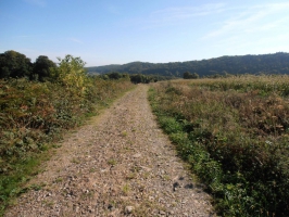 2/ Aller à droite en lisière de forêt. Prendre la route à gauche puis traverser la D110. Emprunter en face la route jusqu'à Maison Rouge et franchir la voie ferrée.