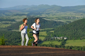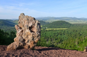 - Vue panoramique sur les puys, le Sancy, le Cézallier et le Livradois.