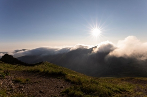 11/ Bifurquer à gauche direction Puy de Sancy. Atteindre le col de la Cabane après avoir laissé à gauche le puy Gros puis surplombé le cirque de la Fontaine Salée. Grimper jusqu’au sommet du puy de Sancy (tables d’orientation). Descendre par les escaliers. Au pas de l’Âne (vue sur les monts du Cantal et les orgues en gerbe), suivre, à gauche, la direction le Mont-Dore, Chastreix. Après les escaliers, descendre à gauche un sentier escarpé jusqu’au col de Courre.