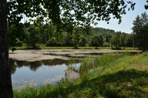 4/ L’emprunter à gauche. À 150m ignorer une route à gauche et poursuivre jusqu’à des bâtiments d’exploitation agricole. Continuer sur un chemin jusqu’au hameau de La Farge puis sur une petite route pour descendre jusqu’à la route en face du plan d’eau.