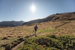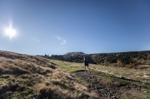 Le puy de Sancy culmine fièrement à 1 885 m d’altitude et les crêtes qui mènent à son sommet sont un véritable terrain de jeu pour le traileur.