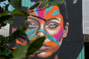 Visage de femme entouré d'éléments liés à la natureFOSR est un artiste de rue qui a créé des œuvres d’art monumentales dans le monde entier. Il a notamment réalisé des fresques de 600m2 à Courchevel 1850 et une sculpture pour le téléthon à Roland Garros, ainsi que de nombreuses autres œuvres à travers le monde. Il est également spécialisé dans les live painting sur des sculptures de renaissance, ce qui lui permet de créer des œuvres d’art uniques en leur genre, mélangeant le style classique avec une approche plus contemporaine. Il a réalisé une fresque représentant une femme au regard puissant entourée d’éléments de la nature avec une symbolique renvoyant à la ville de Moutiers.
