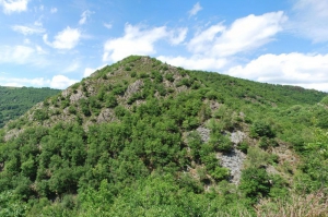 Depuis le chemin on peut observer les monts d'Aubrac qui offrent une perspective lointaine.