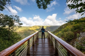 Deux passerelles suspendues au-dessus de la cascade, une immersion unique dans les Gorges de la Truyère et un rocher en forme de tête de chien seront le but de cette balade mémorable.Depuis le parking, prendre le chemin qui descend dans la châtaigneraie. Passer trois portillons et traverser la châtaigneraie. Suivre le chemin jusqu'à la piste forestière. Arrivés à la piste, tourner à gauche jusqu'au ruisseau de la Plane (100 mètres environ).Traverser le petit pont et suivre la piste forestière qui monte. Arrivés à la piste transversale prendre à gauche. Vous êtes sur la partie du sentier botanique. A la route tourner à droite traverser le hameau "Le Laux".Au carrefour, quitter la piste et descendre tout droit dans le chemin. Le suivre et tourner à gauche jusqu'à la première plate-forme aménagée. Celle-ci surplombe un canyon dans lequel dévale un ruisseau qui se jette dans la Truyère, tout en alimentant d'abruptes et magnifiques cascades. En face, vous admirerez le château de Valon et les Gorges de la Truyère. Remonter, reprendre le chemin sur 10 mètres et tourner à gauche vers la deuxième plateforme aménagée. Remonter et reprendre la piste à gauche. Passer sur le pont et remonter à gauche pour suivre le sentier.A la piste forestière, prendre le sentier qui monte en face. Suivre ce sentier jusqu'au hameau du Prat, remonter par la route jusqu'au croisement. Au croisement aller à gauche sur la route pour rejoindre ensuite la piste forestière sur votre droite.Arrivés à "Les Chayes", suivre la petite route jusqu'au carrefour. Tourner à droite pour regagner le point de départ.