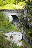1. Descente dans les gorges de la Volferine/site de la Pierre Percée. Le pilier télémécanique au pont de la Chèvre servait de relais pour le câble qui faisait tourner la roue d’un moulin depuis une turbine. A la sortie des gorges, sur le plat du pâturage, emprunter à droite le chemin de Sous Roche. Entrer dans le bois puis à gauche suivre le sentier des « Prés Carrés » « qui arrive au tunnel de Domplomb. Ce dernier débouche dans le grand virage de Domplomb. On trouve là le sentier de descente. On peut aussi traverser le tunnel pour rejoindre à sa sortie le sentier du Dragon.2. À la sortie du tunnel que l’on vient de traverser, descendre le sentier à droite. Avant le Pont du Dragon, on repère les vestiges de la guérite des douaniers. Depuis le pont, on admire l’échelle à poissons nécessaire aux truites pour le franchissement du barrage. 3. À la ferme du Dragon (ancienne épicerie établie en limite de zone franche) bifurquer à droite et continuer par un bon chemin jusqu' à l’usine « électrique » de Sous Roche qui « électrifia le tram » Traverser la Valserine sur une passerelle.4. Montée raide de 20 mnAu niveau des falaises d’escalade, des escaliers et un petit pont sur une résurgence permettent de rejoindre le bois puis le pâturage. On retrouve le chemin des gorges de la Volferine pour le retour au parking.