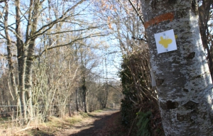 1/ Du panneau de départ, prendre le chemin pénétrant dans la forêt de la cheire de Tournebise, partie de la cheire de Côme (information sur celle-ci, 20m après le départ). 150m plus loin, le chemin entame la traversée du site médiéval des Chazaloux (à 5mn AR de l’intersection, à droite et à gauche, interprétations des traces des bâtis). Continuer tout droit jusqu’à la fourche située à la sortie du site. Aller à droite et, à la fourche suivante, descendre à gauche. À la troisième fourche, partir à droite jusqu’à une intersection en Y.