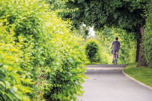 Au rond point, tournez légèrement à droite sur la voie verte.