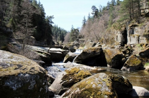De très beaux chemins sillonnent la Margeride au bord de la Truyère. Véritable paradis des pêcheurs, les ruisseaux (Prévenchères, Gazelle et Triboullin) alimentent les moulins et voisinent avec les grandes voies de communication du territoire (Voie romaine Lyon - Toulouse).Partir à gauche du four banal et de l’abreuvoir de Tiracols. Revenir au carrefour à l’entrée du village.Prendre le chemin de terre à droite ; il descend jusqu’au ruisseau de Prévenchères, remonte en face et atteint une piste (jonction avec le sentier GR® 65).Tourner à droite, et à la croix, laisser le chemin de gauche (séparation avec le sentier GR ® 65) pour continuer tout droit sur le chemin de la ferme de Boudonne. Franchir une clôture et se diriger vers la ferme.Avant d’atteindre la ferme de Boudonne, tourner à droite sur le chemin qui descend à travers le pâturage. Après l’échalier, s’avancer en face dans le pâturage et traverser le petit ruisseau de Prévenchères. Prendre le sentier de gauche qui parcourt un bois. Ignorer le chemin qui monte à droite et poursuivre en face dans le bois (! bien suivre le balisage). Le sentier domine la Truyère. Franchir le pont sur la Truyère puis prendre le chemin de droite qui longe les champs en surplomb de la rivière. Parvenir à un croisement.Ignorer le chemin de Lestival à gauche et poursuivre à droite en bordure de prairies. Le sentier longe le bois en surplomb de la Truyère [ > Chaos granitique du Baou de Lestival] (! Prudence, roches blanches glissantes) et atteint un pont. Le franchir et continuer en face à travers champs vers un échalier. Poursuivre la remontée dans un pâturage (! bien suivre le balisage) puis sortir à découvert sous la ligne HT. Atteindre une large piste d’abord peu marquée puis qui monte vers la gauche en lacets. Franchir une clôture et poursuivre en face la piste qui conduit au village de Tiracols.