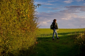1. A la patte d’oie, à droite, passer la Huetterie, et poursuivre sur une voie bitumée. A la Morandière, la voie devient chemin. Dépasser l’Airerie puis à un carrefour, tourner à droite. A la RD116 (prudence !), la traverser, et poursuivre en face. Passer les Marchais (la voie goudronnée devient chemin). Après le petit bois, continuer sur la droite. A la route (prudence !) la suivre sur la droite. Au pied du silo, s’engager à gauche sur un chemin, longer le bois (à la sortie du bois panorama). Arriver sur un chemin, le suivre su la droite, sur 50m, puis emprunter le premier à gauche. Poursuivre sur la droite et dépasser la Courouzière (panorama). Le chemin devient route.
