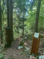 Faites demi-tour sur quelques mètres puis prenez le sentier à droite qui monte dans les profondeurs de la forêt. Continuez à monter, le sentier descendra par la