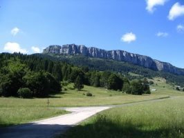 1/ Profiter du long mais agréable parcours par la piste pastorale (2 km) pour admirer la variété des vaches dans les pâturages et les beaux sommets du massif de la Chartreuse Nord. Laisser le chemin à droite et continuer tout droit sur la piste jusqu’au poteau « La Serra » 1315m.