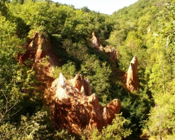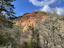 2 - Le prendre à gauche et traverser Bard. A la sortie, prendre le chemin à gauche et avancer jusqu’à la pancarte du domaine Sauvat. Monter le chemin à gauche jusqu’au croisement (point 1) (croix en fer). Partir à droite jusqu’à la route. La prendre à gauche et entrer dans Boudes. Après le pont et la rue du Theur, tourner à droite, passer la fontaine et retourner au parking.