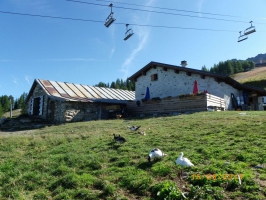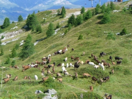 La descente : chemin qui descent sous cette Bergerie et rejoint vers le sud la forêt de Plan-Peisey par le plan de l'ours. On arrive juste au dessus du Vieux-Plan.