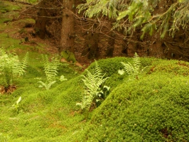2/ Le franchir et continuer tout droit. Traverser un ru puis continuer à gauche (plantation récente) jusqu’à une chicane adossée à une clôture. Tourner à droite puis, après quelques mètres, tourner à gauche en suivant une clôture à main droite. Passer une chicane puis un ru et monter tout droit dans une prairie. Franchir un escabeau puis poursuivre la montée en suivant une clôture à main droite. Traverser la prairie en obliquant un peu à droite pour rejoindre l’orée d’une forêt au point haut.. Descendre à droite en bordure de la forêt, franchir un escabeau.et pénétrer par un large chemin dans la forêt. Passer un ru puis un deuxième et longer un muret en limite d’un pré. Plus loin le chemin s’en écarte puis le surplombe après avoir viré à gauche. Monter à droite, franchir un escabeau et, après 20m, s’engager à gauche sur un chemin herbeux le long d’une haie. Franchir celle-ci et continuer à gauche jusqu’à une route.
