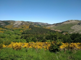 A l’intersection, s’engager sur le sentier à gauche et monter en lisière de la forêt de hêtres. Gagner la tour (point culminant du plateau du Caroux, à 1 091 m) et poursuivre par le sentier qui descend. Suivre la piste à droite. En deux larges lacets (point de vue à droite sur le bassin minier de Graissessac, la tour de guet de la montagne de Rosis, la montagne d’Aret et le parc éolien de la montagne de l’Espinouse), elle ramène au parking.