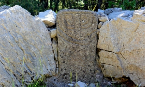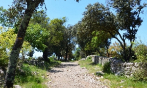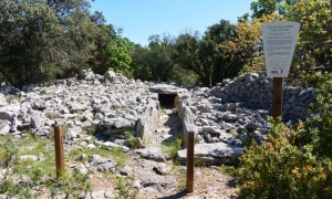 Au sein d’un site riche en mégalithes, cette boucle se déroule sous des chênes verts, par d’anciennes drailles bordées de murets en pierres sèches et atteint le mas de Roussières qui sent bon la brebis.