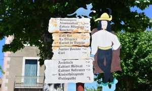 Dans la traversée du village par la RD32, au niveau de la croix de mission (s'engager au fond du parking vers le tennis)