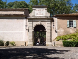 Du parking, face à la manufacture, rejoindre et emprunter l’allée de droite entreles platanes et les marronniers plusieurs fois centenaires. Au niveau du transformateur, ignorer la piste en face, tourner à gauche le long des bâtiments et arriver au pied d’une cheminée remarquable (en face, se dresse un buffet d’eau). Poursuivre à gauche et passer en bordure d’un ancien bassin (qui servait de réservoir d’eau).