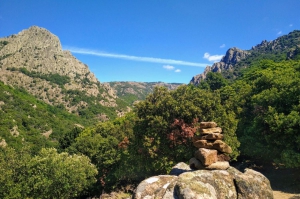 4 Continuer en face, s’élever vers un nouveau col (arche du Roc Traucat). Redescendre en sous-bois, franchir plusieurs petits ravins et atteindre le pont du Vialais. Monter à droite dans la forêt et, 100 m plus loin, dans un virage, se diriger à gauche en ignorant le sentier en face. Monter jusqu’au col de l’Ourtigas.