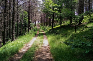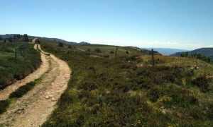 5 Gagner la D 180, aller à droite sur quelques mètres, puis monter à droite sur une piste cimentée. Sortir de la forêt et tourner à droite. En fin de montée, s’orienter à gauche et cheminer sur les crêtes de la montagne d’Aret au dessus du Vialais. Rester sur la piste principale en ignorant des départs de sentiers à droite.