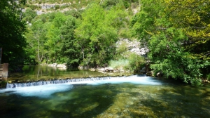 Du parking de Navacelles, prendre à gauche le chemin qui remonte la Vis jusqu’au pont.