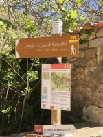 S’engager à gauche sur le chemin des Vignes. Il est bordé de plusieurs mazets (anciennes cabanes de vigne construites en pierres sèches ou en moellons de calcaire). Franchir l’éperon et poursuivre par le sentier étroit en balcon (attention: passages de pierriers) jusqu’à une intersection (jonction avec l’accès du belvédère de Blandas).