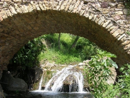 Du parking, descendre la rue des écoles, rejoindre le cimetière et le longer sur la gauche (point d’eau). Descendre sur 40 m, arriver au « chemin Buffe vent », le descendre jusqu’au pontil, ne pas le traverser. Prendre à droite le chemin qui longe le ruisseau et suit un muret en pierre, passer un gué et rejoindre une route. L’emprunter à droite sur 50 m.