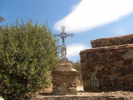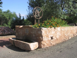 547 m, 31 T 493075 4813973En haut, à l’intersection, possibilité de faire un aller-retour à droite par la route goudronnée sur 1,5 km jusqu’à la chapelle de la Dourque (aire de pique-nique) ou suivre la route goudronnée qui fait un virage à droite pour arriver, après 1 km, à un croisement doté d’une autre cuve.