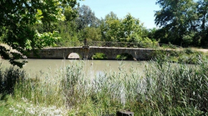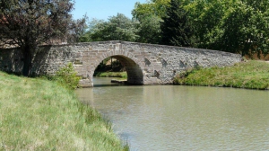 47 m, 31 T 498181 4797952Quitter la route et se diriger à droite sur le chemin goudronné en direction du domaine de Malviès. Traverser le domaine, et descendre jusqu’au Canal du Midi. Au Canal, prendre à gauche vers le pont, le franchir.