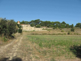 28 m, 31 T 496507 4795693Laisser la route qui dessine un angle droit à gauche pour s’engager à droite sur le petit chemin goudronné montant, au coin de la maison. Sur la droite, remarquer le bel édifice rond, base d’un ancien moulin à vent. Suivre ce chemin pendant 1,7 km en ignorant le chemin arrivant de droite. Au croisement, poursuivre sur cette voie. Atteindre une fourche.