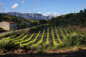 Route de campagne et chemins de vigne.Circuit n°1 de l'espace VTT-FFC Caroux en Haut-Languedoc.