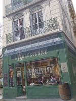 Eh non, l'Arlésienne d'Alphonse Daudet et de Georges Bizet n'était PAS arlésienne. Mais biterroise. Elle s'appelait Marie Cauffopé, et habitait à cet endroit même, à l'angle des Allées Paul Riquet et de la rue Boïeldieu. Ici, vous la voyez à son balcon, et en-dessous, assis au café, Frédéric Mistral et son neveu, François. François était le fiancé de la belle mais... cette belle était infidèle. Il ne supporta pas cette trahison et se suicida, en 1862. Son oncle Mistral raconta l'histoire à Alphonse Daudet, qui la transposa dans "les lettres de mon moulin". A son tour, Georges Bizet (lui aussi assis dans le bistroquet) s'en empara, et composa "l'Arlésienne". Sacrée biterroise va...