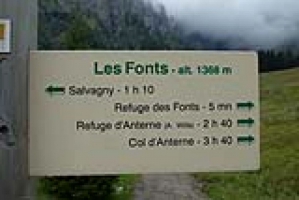 Variante : du parking de Nant Sec (hameau de Salvagny), traverser le pont et suivre le large chemin. Ce dernier s'élève à travers les bois, et vous découvrirez en contrebas, sur votre droite, une vue originale de la fameuse Cascade du Rouget. Continuer tout droit en direction des Fonts, en laissant sur votre gauche le chemin remontant en direction du refuge du Grenairon. Passer la Célière, le chemin arrivant des Fardelay se trouvera sur votre droite. Puis continuer sur le large chemin.