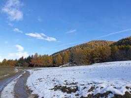 L'hiver, comptez 5h pour faire l'intégralité de la randonnée en raquettes.Départ depuis le chef-lieu de Notre-Dame-du-Pré, sur le parking de la place du village. Se diriger vers l’église et suivre la route qui continue sur sa gauche, jusqu’à la première cascade (env. 500 m). Suivre la route jusqu’au sentier balisé indiquant Hauteville (env. 500 m). Continuer sur ce chemin qui traverse la forêt jusqu’au hameau de Hauteville (Env. 45 min).A Hauteville, passer devant l’ancienne chapelle, continuer vers la fontaine qui jouxte le four à pain communal. Sur le versant opposé, on aperçoit le hameau de Montfort au-dessus de Moûtiers. Poursuivre la randonnée sur le même sentier au-dessus de la fontaine. A la sortie de Hauteville, prendre sur la gauche au niveau de l’ancienne carrière du hameau (env. 40 m après les ruines). Suivre le petit chemin qui serpente au-dessus de la carrière, puis continuer sur ce sentier bordé de mélèzes jusqu’à la route de Pré Communal un peu plus haut (Env. 10 min).A l'intersection avec la route de Pré Communal, deux possibilités pour vous rendre à ce petit hameau de trois maisons :- la plus facile (+ 20 min)Prendre la route qui monte en prenant la voie de gauche, celle-ci traversera le ruisseau de pré communal et mènera au hameau après trois épingles.- la plus difficile (env. 10 min)Poursuivre en face du sentier emprunté jusque là, il monte directement au hameau. Variante plus pentue mais bien moins longue ! A partir de Pré Communal, suivre la route qui monte pendant 10 min et la quitter environ 50 mètres avant la seconde épingle. Suivre le sentier en direction de La Lèche, puis de Bois Renaud et continuer de descendre sur le même sentier jusqu'à la cascade de la Chaille. De là 2 options :+ court à travers la forêt par le lieu dit "Les Foyères" (à 45 min du village) :Prendre le sentier sur votre gauche avant le pont et le descendre jusqu'à la route forestière. Prendre ensuite à droite sur le sentier de Hauteville et rejoindre Notre-Dame-du-Pré.+ long : Après le pont, poursuivre sur le chemin forestier qui vous mènera vers les alpages. Passer ensuite sous les câbles du téléski. A cet endroit, deux possibilités :1ère option : Continuer tout droit sur le chemin et arriver jusqu’à la route goudronnée, la suivre en descente jusqu’à Notre-Dame-du-Pré (Env. 30 min)2ème option : Suivre le petit sentier qui longe les câbles du téléski par cet ancien chemin plus pentu qui descend jusqu’au village (Env. 15 min). Durant toute la descente vers le Chef-Lieu, vous profiterez d’une vue exceptionnelle sur la Tarentaise et la Basse Tarentaise. Si le temps est clément, vous pourrez apercevoir le sommet du Mont-Blanc et ses neiges éternelles !