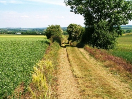Arrivé à celle-ci, prendre à gauche sur environ 300m, puis le premier chemin à droite. Après avoir longé un premier bosquet, traverser un chemin et continuer tout droit. Traverser un second bosquet en allant toujours tout droit, et à la sortie de celui-ci prendre le chemin qui part vers la droite. Rejoindre la route et prendre sur la droite jusqu’au hameau Quesnay.