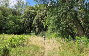 Dans cette zone de sous-bois plusieurs espèces végétales sont visibles, chênes liège, fragon, mousses et lichens champignons en automne.Le vignoble avec son terroir unique sur ses trois appellations (Indication Géographique Protégée) : Côtes de Thongue, Pays d’Hérault et Pays d’Oc est visible à perte de vue.
