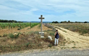 A l’intersection avec le chemin d’Abeilhan, prendre à gauche sur 150m environ et ensuite coupez tout droit en suivant le petit sentier pendant 150m pour rejoindre la voie communale n° 10 d’Alignan du Vent appelée chemin de la rivière. Poursuivez à droite sur le chemin de la rivière pendant 200m.