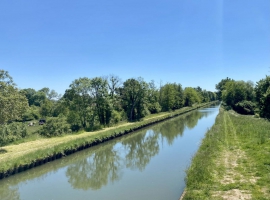 - Puis, passer entre l’entrée du château et le long bâtiment de l’ancienne école privée des garçons, actuellement salles communales (parcours commun avec le circuit des « Quarts » jusqu’au canal).- Au pont de Petero les 2 circuits divergent. Prendre la levée du canal que l’on suivra vers le sud jusqu’au pont de la D 164.- Traverser le pont et s’engager franchement à droite sur le chemin sablé. Laisser « La Reue » sur la gauche et poursuivre le chemin.- Tourner à gauche sur le chemin de terre qui monte raide entre les haies. Au carrefour tourner à droite le long du bois.- Puis, tourner de nouveau à gauche sur le chemin goudronné, traverser le petit pont de la queue de l’étang de Mont et poursuivre jusqu’à un carrefour.- Ensuite, tourner sur le chemin bitumé le plus à droite, traverser la ferme des « Pelletiers » et poursuivre le chemin montant après l’étang.- Puis, s’engager sur le chemin de terre le long du bois. Déboucher sur la petite route de « Vacherot » descendre pour retrouver le pont du canal. Cette fois prendre la levée vers l’aval jusqu’à l’écluse de Beaulon. Retour par la D 298 (prudence) sur cette portion. Ce circuit peut être relié avec le circuit des Quarts (boucle de 22,5km).https://ignrando.fr/fr/parcours/fiche/details/id/1310710/