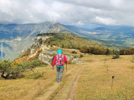 Au départ du damier agricole coloré de la vallée de Quint, cette emblématique traversée sur la ligne de crête entre falaises et plateau, s'avance telle une vigie au-dessus de la vallée de la Drôme et s’ouvre sur l'un des plus beaux panoramas du Vercors.