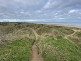 Au bout du chemin, prenez la route sur votre droite et dirigez vous vers la mer. En bord de mer, suivez le cordon dunaire en direction de Courseulles-sur-Mer.