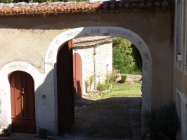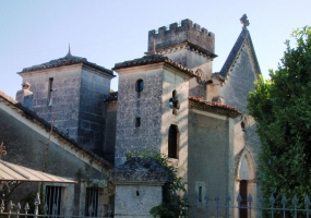 Dominant la campagne environnante à la limite du bourg, cette belle église de style roman bâtie au 12ème siècle présente un très beau décor sculpté en façade.La partie de l'édifice dédiée à Saint Martial est antérieure à 1110, mais sa façade et l'abside sont de la seconde moitié du 12ème siècle. Déjà modifiée au 13ème siècle par la réalisation d'une voûte sur croisées d'ogives au-dessus de la travée orientale de la nef, elle a été agrandie par deux chapelles latérales au 15ème siècle.La façade divisée en trois niveaux par des bandeaux, est dotée de sculptures d'une grande finesse d'exécution. Au rez-de-chaussée, entre deux arcades aveugles, le portail comporte quatre voussures. Tous les arcs reposent sur des colonnettes dotées de chapiteaux sculptés de petits personnages, d'animaux et de motifs. Au-dessus, cinq arcades aveugles, à l'exception de celle du centre percée d'une petite baie, reposent sur des colonnettes aux chapiteaux ornés de palmettes. Le pignon a été refait au 19ème siècle.La nef est voûtée en berceau plein cintre pour trois de ses travées alors que la quatrième est sur croisées d'ogives. Il n'y a pas de transept et ce sont les chapelles créées au 15ème siècle qui débordent des côtés sud et nord. Le clocher s'élève au-dessus d'une coupole sur pendentifs.