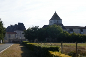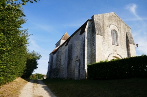 La façade renforcée à ses extrémités par deux contreforts, est percée d’une porte plein cintre, possédant encore une colonne avec un beau chapiteau orné d’un dragon. Des contreforts supplémentaires ont été ajoutés. Cette grande saillie, la présence de chapiteaux galbés permettent de faire remonter l’église à la fin du 12ème siècle.L’église possède un chœur comprenant une travée droite et une abside semi-circulaire. L’abside voutée en cul-de-four, est ouverte par trois baies en plein cintre encadrées de colonnettes à l’intérieur comme à l’extérieur. C’est sur les chapiteaux de ces colonnettes que se trouve l’essentiel de la sculpture de l’édifice. Bien que de médiocre facture, le chapiteau situé au sud de la baie axiale de l’abside est particulièrement intéressant pour sa valeur symbolique. Il y est figurée une chouette harcelée par des oiseaux. Cette représentation appartient au bestiaire roman.Le chœur se prolonge à l’ouest par une travée droite couverte d’une coupole sur pendentifs et surmontée d’un clocher moderne dont l’accès se situe dans un gros contrefort marquant l’angle sud-ouest de la travée. Cette travée délimitée par quatre arcs est ouverte au nord et au sud par une baie en plein cintre qui devait à l’origine être encadrée de colonnettes.L’arc septentrional se compose de deux rouleaux supportés par des colonnes sur dosserets, composition qui devait se retrouver à l’ouest à l’époque romane. Cette dissymétrie pourrait s’expliquer par la chute du clocher qui aurait entraîner une reconstruction partielle de cette travée mais aussi d’une partie de la nef.L’église comprend une nef unique couverte d’une voûte de pierre en berceau. Cette hypothèse est confirmée par la présence de colonnes engagées sur les murs latéraux. Ces colonnes délimitent chaque travée de la nef et correspondent à l’extérieur à des contreforts. Elles étaient situées à la retombée des arcs doubleaux qui supportaient la voûte d’origine. Elles se terminent par des chapiteaux chanfreinés dont les tailloirs se prolongent par un bandeau qui marque le départ du couvrement.Il est à noter également un décrochement des murs de la deuxième travée au sud comme au nord qui doit être rapproché de l’aspect fortement déjeté des murs de la nef. Il semblerait que ces éléments soient à rattacher à une destruction partielle de l’église, probablement à l’époque moderne due à l’effondrement du clocher et de la voûte en berceau. Nous savons en effet que le clocher a été reconstruit en 1760. Cette reconstruction marque sans doute la fin des travaux entamés des le 17ème siècle comme l’atteste le style des restaurations. C’est ainsi que les murs de la nef et de la travée droite du chœur ont été en partie remontés et consolidés par d’épais contreforts.D’autre part, les piliers marquant la limite entre la nef et le chœur ont été renforcés ainsi que l’arc qu’ils supportent. Le financement de ces travaux a pu être facilité par la proximité du château de Balzac, les châtelains ayant sans doute contribué aux frais occasionnés par la restauration de l’église. La présence d’une porte percée dans la deuxième travée de la nef en direction du château est là pour le confirmer. Cette marque du 17ème siècle se retrouve en façade avec la présence d’un cavalier sculpté en bas relief, cavalier qui pourrait être une représentation de saint Martin. Cette sculpture vient rompre la grande sobriété de la façade qui comprend un portail simple formé de deux voussures sans aucun décor. Ce portail est surmonté d’une baie en plein cintre soulignée par un cordon en pointes de diamant, seul vestige du décor roman. En effet, la sculpture pratiquement absente sur cette façade y avait autrefois sa place.Sur l’un des chapiteaux des colonnes encadrant le portail, avait été représenté un dragon. Les colonnes ayant aujourd’hui disparu nous ne pouvons plus apprécier le style de cette sculpture. Mais la sculpture n’est pas le seul élément de décoration de cet édifice qui renferme une peinture murale de la fin du Moyen Age. L’église a été recouverte d’un décor peint présent ça et là sur les murs de la nef. Mais la partie la plus intéressante de ce décor se situe sur le mur nord de la travée droite du chœur. Très endommagée, elle permet cependant d’observer plusieurs personnages ainsi que des inscriptions malheureusement illisibles. Cette peinture fait apparaître un archer tirant sur un homme à demi dévêtu attaché à un poteau. Cette scène peut être interprétée comme une figuration de saint Sébastien, patron des archers, considéré au Moyen Age comme un saint protecteur de la peste. D’autres représentations sont visibles. Nous pouvons notamment reconnaître une femme tenant une épée, des écussons et un nimbe crucifère. Cependant, une grande partie de cette peinture ayant été détruite, il est impossible de faire le lien entre ces différentes représentations.Elle était à l’origine une possession des comtes d’Angoulême. Nous savons qu’une construction seigneuriale existait dés le 12ème siècle à Balzac. Pouvons-nous pour autant faire le lien entre cette construction et l’église qui de ce fait aurait pu avoir une fonction de chapelle castrale ? Il est étonnant que l’église soit isolée de tout édifice mis à part du château du 17ème siècle. Si nous nous référons à la toponymie, nous trouvons à proximité des lieux un hameau appelé La Chapelle. S’agissait-il d’une référence à une chapelle castrale ? Le problème est délicat mais l’hypothèse n’est pas a écarter dans la mesure où l’église appartenait aux comtes d’Angoulême et qu’elle était située à proximité d’une construction seigneuriale.On y arrivait autrefois du château par une charmille qui conduisait 