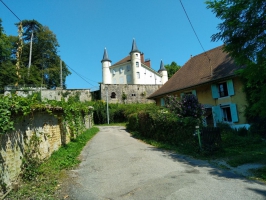 Exceptionnel ensemble typique de l'architecture dauphinoise du XVIIIe siècle. Comme une "île à la campagne", le château est accessible par un pont-levis au-dessus des douves en eau.