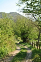 Info mai 2022 : le poteau Moneure n'est plus en place actuellement, au poteau des Brosses il faut donc suivre Voiron par la Lieure. 100 mètres après le poteau des Brosses, tourner sur le chemin à gauche (vous quittez le chemin de Compostelle avec son symbole de noix de St-Jacques).