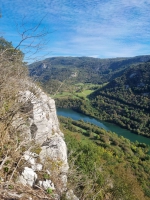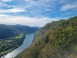une petite rando en sous bois avant de découvrir les falaises de Chatillon surplombant l’Ain. Elles offrent de splendides points de vue sur les gorges de l'Ain et la reculée de Corveissiat.