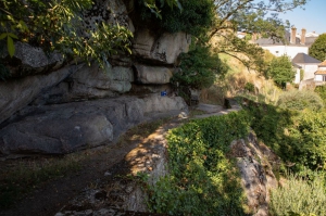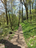 Prendre la passerelle à gauche, puis traverser la route. Dans le virage, emprunter le sentier qui remonte jusqu'à la route. Prendre à gauche, puis tout de suite à droite pour longer le cimetière et arriver face au terrain de tennis.