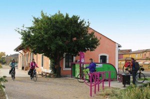 En arrivant à Cazouls (où vous trouverez une halte vélo), vous passerez devant l’ancienne gare et ferez halte à la cave des Vignerons du Pays d’Ensérune avant de rouler encore 3 km à travers les champs de vignes. À la fin (provisoire) de cette portion de voie verte, prenez à droite pour redescendre sur Maureilhan.