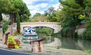 Profitez de belles vues sur les quais ainsi que sur les péniches. Continuez toujours tout droit en suivant le canal du Midi. Vous apercevrez la majestueuse collégiale Saint-Etienne (visites et montées au clocher sur rendez-vous) avant d’arriver sur le plus grand port du canal du Midi à Capestang.